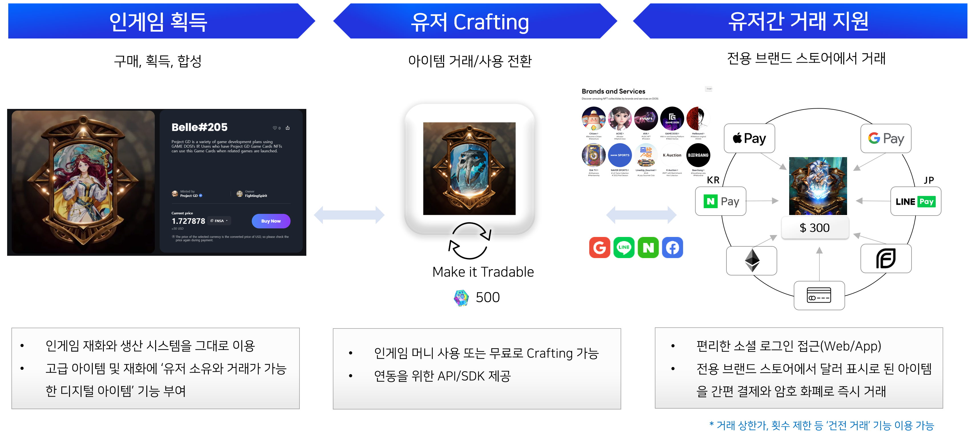 일반 커머스와 같은 간편 결제/ 올인원 로그인 시스템 등 가장 간편한 디지털 아이템 거래 경험을 제공합니다.